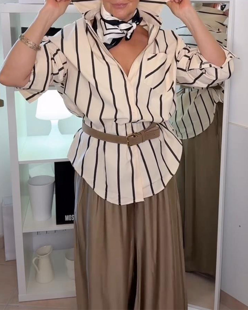 NY Icon1 Skjorte Med Vertikal Stripetrykk Og Revers