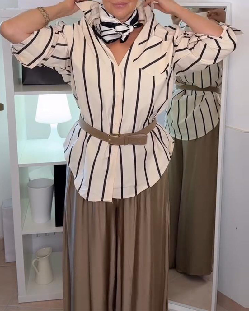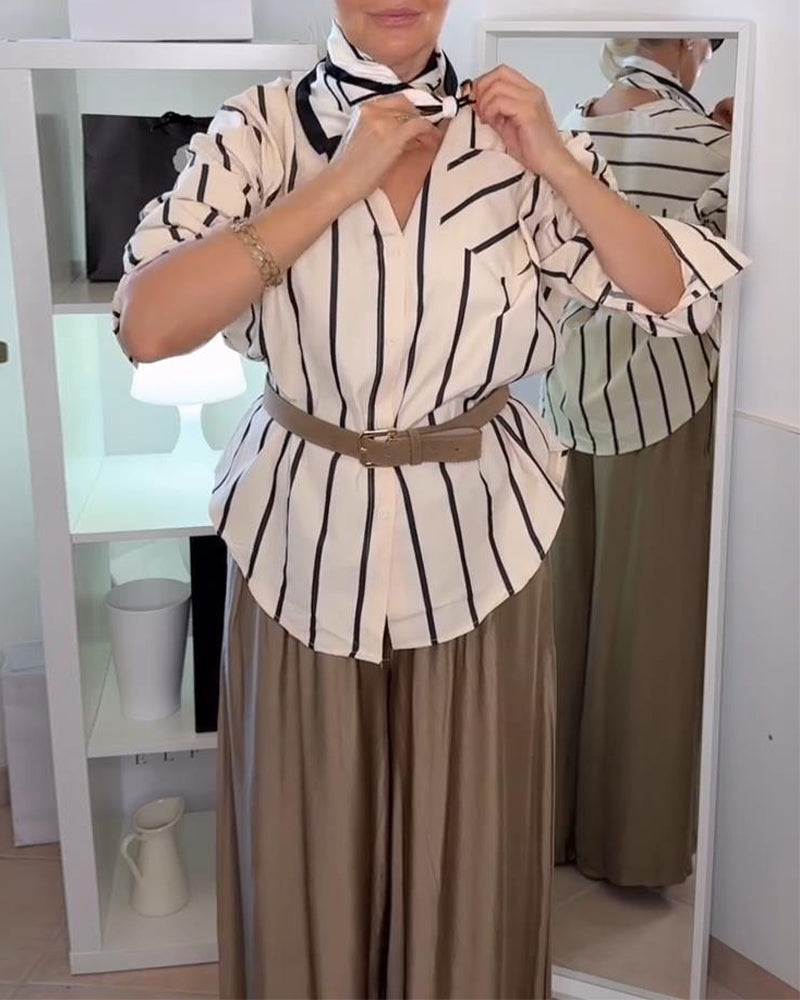 V-hals Topp med 3/4 Erme og Knapper på Ryggen