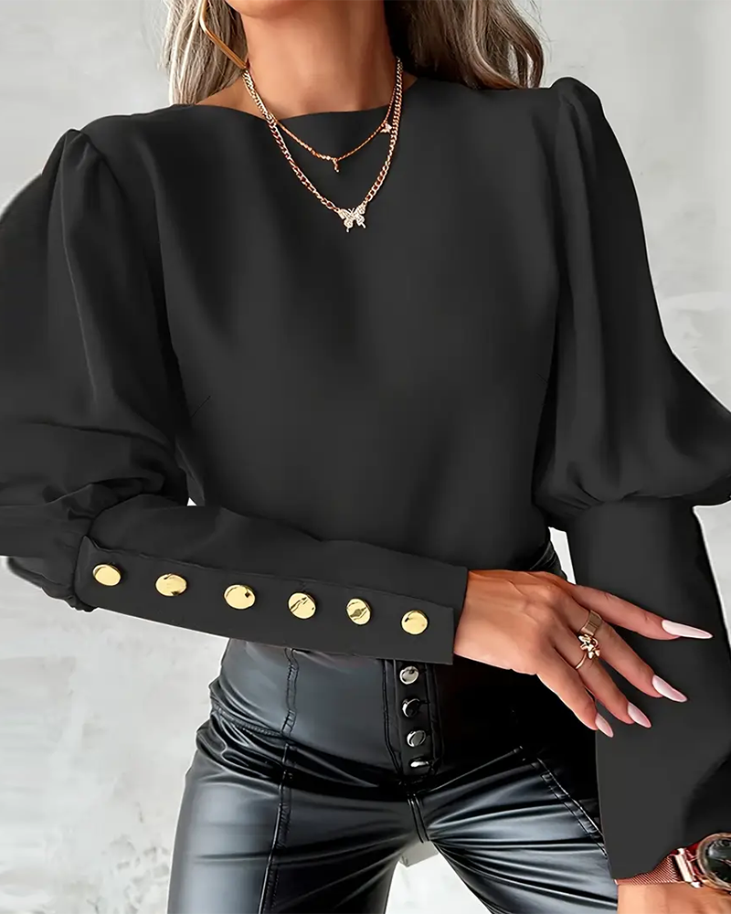 V-hals Topp med 3/4 Erme og Knapper på Ryggen