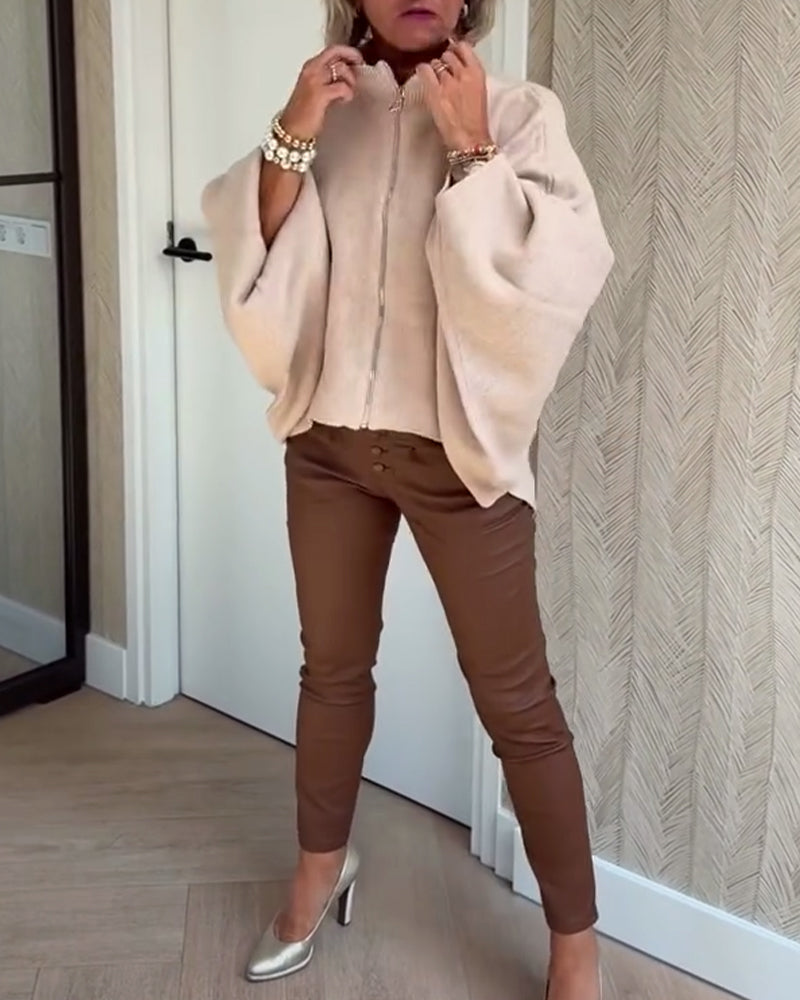 Enkel ensfarget cardigan med flaggermus hette
