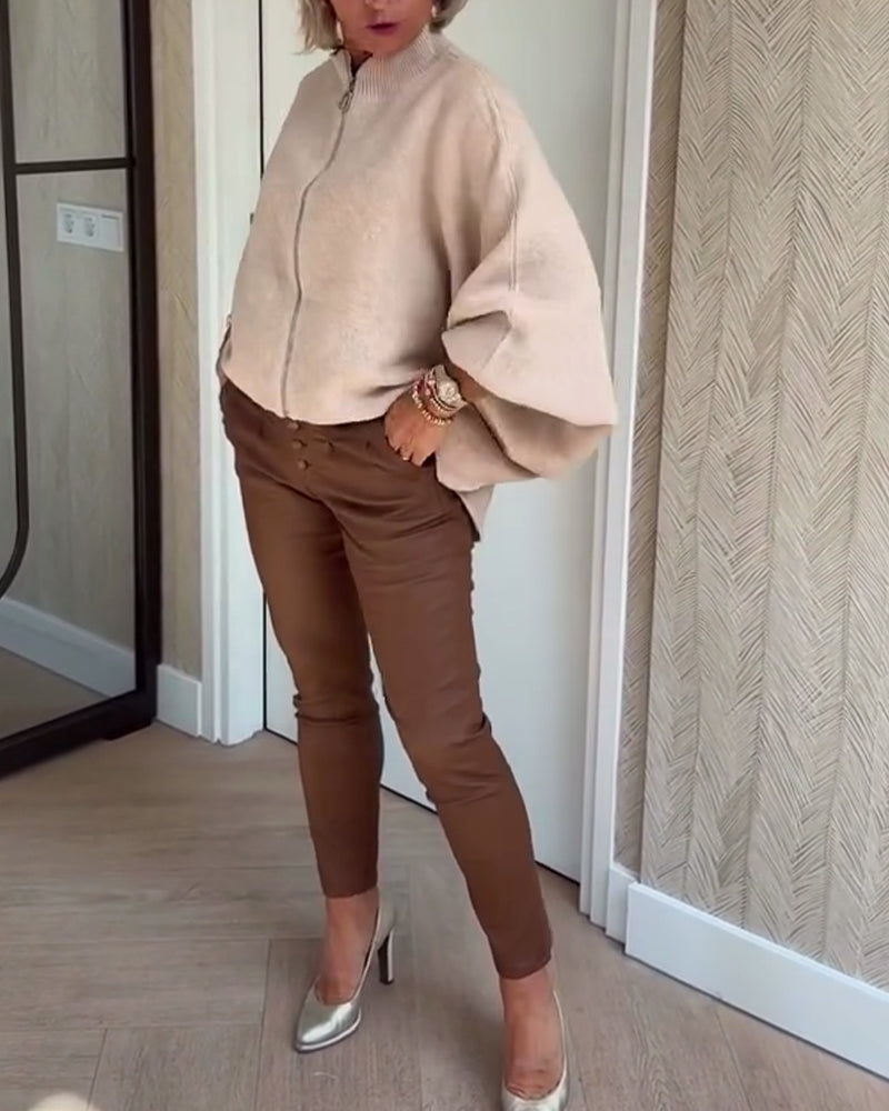 Cardigan Med Ballongermer Chunky Strikk