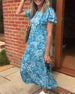 Kortermet lang kjole med blomstertrykk