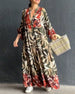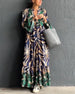SPESIFIKASJONER Stil: Uformelt, Ferie, Elegant Materiale: 5% Spandex, 95% Polyester Kjole type: A-line Kjolens lengde: Maxi Halslinje: V-hals Mønstertype: Trykt Ermetype: Utvidet erme Erme lengde: Langermet Passform type: Løs Årstid: Vår, Sommer, Høst Anledning: Daglig, Ferie Pakken inkluderer: 1 x Kjole STØRRELSESTABELL (cm) St...