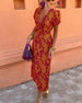 SPESIFIKASJONER Stil: Ferie Materiale: 100% Polyester Kjole type: A-line Kjolens lengde: Maxi Halslinje: V-hals Mønstertype: Trykt Ermetype: Spalte ermer Erme lengde: Kort erme Detaljer: Spalte Passform type: Vanlig Årstid: Sommer Anledning: Ferie Pakken inkluderer: 1 x Kjole STØRRELSESTABELL (cm) Størrelse EU Bryst Lengde Sku...