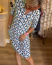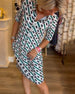 Geometrisk kjole med V-hals og trykk