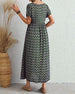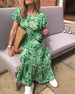 SPESIFIKASJONER Stil: Elegant Materiale: Bomullsblandinger Kjole type: A-line Kjolens lengde: Maxi Halslinje: V-hals Mønstertype: Blader Ermetype: Pufferme Erme lengde: Kort erme Detaljer: Rynket Passform type: Vanlig Årstid: Vår, Sommer Anledning: Daglig, Ferie Pakken inkluderer: 1 x Kjole STØRRELSESTABELL (cm) Størrelse EU Bryst Lengd...