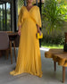 Lang kjole med dyp V-utringning og lange ermer
