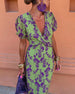 V-hals kjole med delte ermer med ferietrykk
