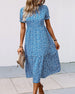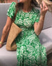 SPESIFIKASJONER Stil: Uformelt, Ferie Materiale: 3% Spandex, 97% Polyester Kjole type: A-line Kjolens lengde: Midi Halslinje: Rund hals Mønstertype: Trykt Ermetype: Volanger erme Erme lengde: Kort erme Passform type: Vanlig Årstid: Vår, Sommer, Høst Anledning: Daglig, Ferie Pakken inkluderer: 1 x Kjole STØRRELSESTABELL (cm) Stør...