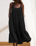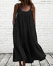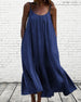 SPESIFIKASJONER Stil: Uformelt, Ferie Materiale: Bomullsblandinger, Polyester Kjole type: Cami Kjolens lengde: Midi Halslinje: Spaghetti stropper Mønstertype: Ensfarget Erme lengde: Ermeløs Detaljer: Rufsete Passform type: Løs Årstid: Vår, Sommer, Høst Anledning: Daglig, Ferie Pakken inkluderer: 1 x Kjole STØRRELSESTABELL (cm) Stø...