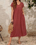 SPESIFIKASJONER Stil: Uformelt, Elegant, Forretning Kjole type: A-line Kjolens lengde: Midi Halslinje: V-hals Mønstertype: Prikk, Bokstaver, Geometrisk trykk, Trykt, Sommerfugltrykk Ermetype: Vanlig erme Erme lengde: Kort erme Detaljer: Snøre opp Passform type: Vanlig Årstid: Vår, Sommer, Høst Anledning: Daglig, Arbeid Materiale: Polyester P...