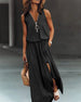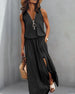 SPESIFIKASJONER Stil: Uformelt, Ferie Materiale: 95% polyester, 5% spandex Kjole type: Tank Kjolens lengde: Maxi Halslinje: V-hals Mønstertype: Ensfarget Erme lengde: Ermeløs Detaljer: Spalte, Glidelås Passform type: Vanlig Årstid: Vår, Sommer, Høst Anledning: Daglig, Ferie Pakken inkluderer: 1 x Kjole STØRRELSESTABELL (cm) Størrelse Br...