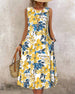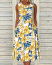 SPESIFIKASJONER Stil: Ferie Materiale: 100% Polyester Kjole type: A-line Kjolens lengde: Midi Halslinje: Rund hals Mønstertype: Blomstret Erme lengde: Ermeløs Detaljer: Lomme Passform type: Vanlig Årstid: Sommer Anledning: Daglig,Ferie Pakken inkluderer: 1 x Kjole STØRRELSESTABELL (cm) Størrelse Bryst Lengde S 90 117 M 95 118....