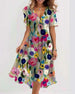 SPESIFIKASJONER Stil: Uformelt Materiale: Bomullsblandinger Kjole type: A-line Kjolens lengde: Over kneet Halslinje: V-hals Mønstertype: Blomstret Ermetype: Volanger erme Erme lengde: Kort erme Detaljer: Rufsete Passform type: Vanlig Årstid: Sommer Anledning: Daglig, Ferie Pakken inkluderer: 1 x Kjole STØRRELSESTABELL (cm) Størrelse Bryst Le...