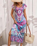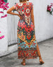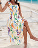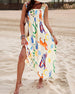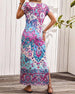 SPESIFIKASJONER Stil: Uformelt,Ferie Materiale: 5% Spandex,95% Polyester Kjole type: Rett Kjole Kjolens lengde: Maxi Halslinje: U-hals Mønstertype: Trykt Ermetype: Vanlig erme Erme lengde: Kort erme Detaljer: Spalte Passform type: Vanlig Årstid: Sommer Anledning: Daglig,Ferie Pakken inkluderer: 1 x Kjole STØRRELSESTABELL (cm) Størr...