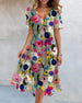 SPESIFIKASJONER Stil: Ferie, Elegant Materiale: Bomullsblandinger Kjole type: A-line Kjolens lengde: Midi Halslinje: V-hals Mønstertype: Blomstret Ermetype: Vanlig erme Erme lengde: Kort erme Detaljer: Spalte Passform type: Vanlig Årstid: Vår, Sommer Anledning: Daglig, Ferie Pakken inkluderer: 1 x Kjole STØRRELSESTABELL (cm) Størrelse B...