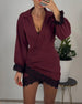 Lace-Up Kjole Sexy Wrap Bryst Paljetter Fløyel