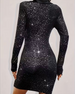 SPESIFIKASJONER Stil: Fest Materiale: Bomullsblandinger Kjole type: Bodycon Kjolens lengde: Knelengde Halslinje: V-hals Mønstertype: Paljett Ermetype: Vanlig erme Erme lengde: Langermet Detaljer: Spalte Passform type: Skinny Årstid: Høst,Vinter Anledning: Parti Pakken inkluderer: 1 x Kjole STØRRELSESTABELL (cm) Størrelse Bryst Lengde S 95 ...