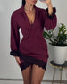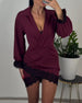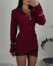 SPESIFIKASJONER Stil: Elegant,Fest Materiale: Bomullsblandinger Kjole type: Asymmetrisk Kjolens lengde: Over kneet Halslinje: Slag Mønstertype: Ensfarget Ermetype: Vanlig erme Erme lengde: Langermet Detaljer: Lappeverk,Knapper,Blonder Passform type: Vanlig Årstid: Vår,Høst,Vinter Anledning: Daglig,Parti Pakken inkluderer: 1 x Kjole STØRRELSEST...