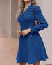 Klänning Med Veckad V-Hals Design, Spets Panel Detalj Og Elegant Stemning