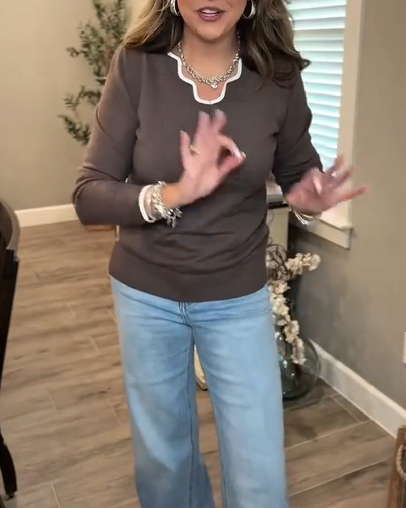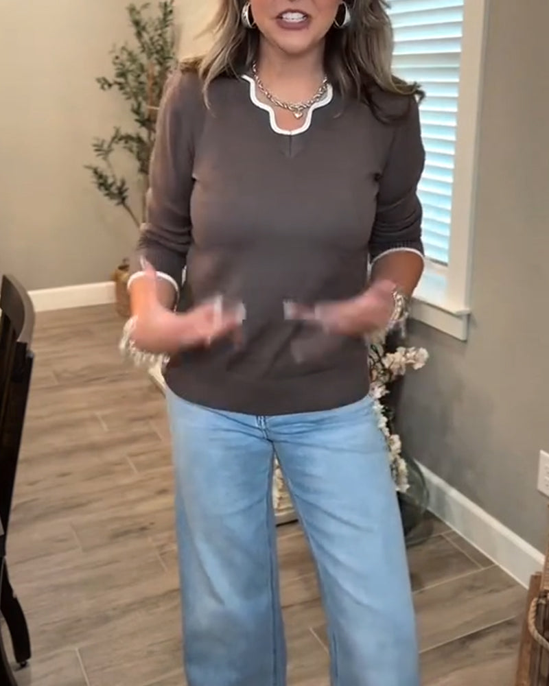 Genser Med V-Hals, Knappet Og Asymmetrisk Egenskaper