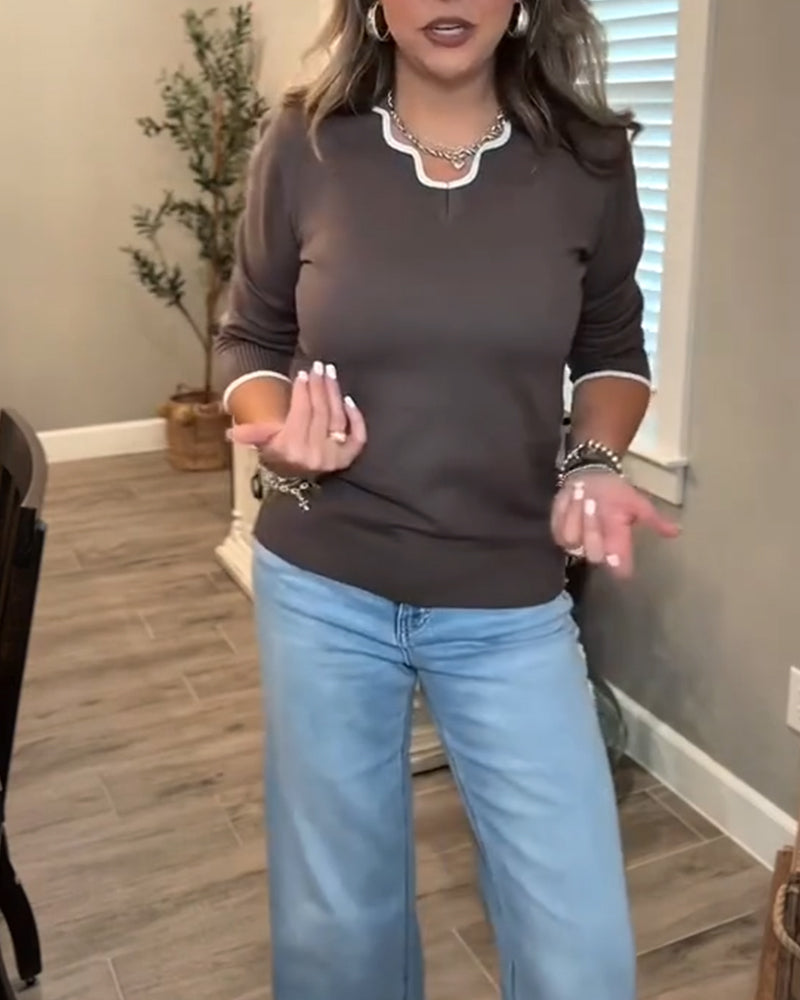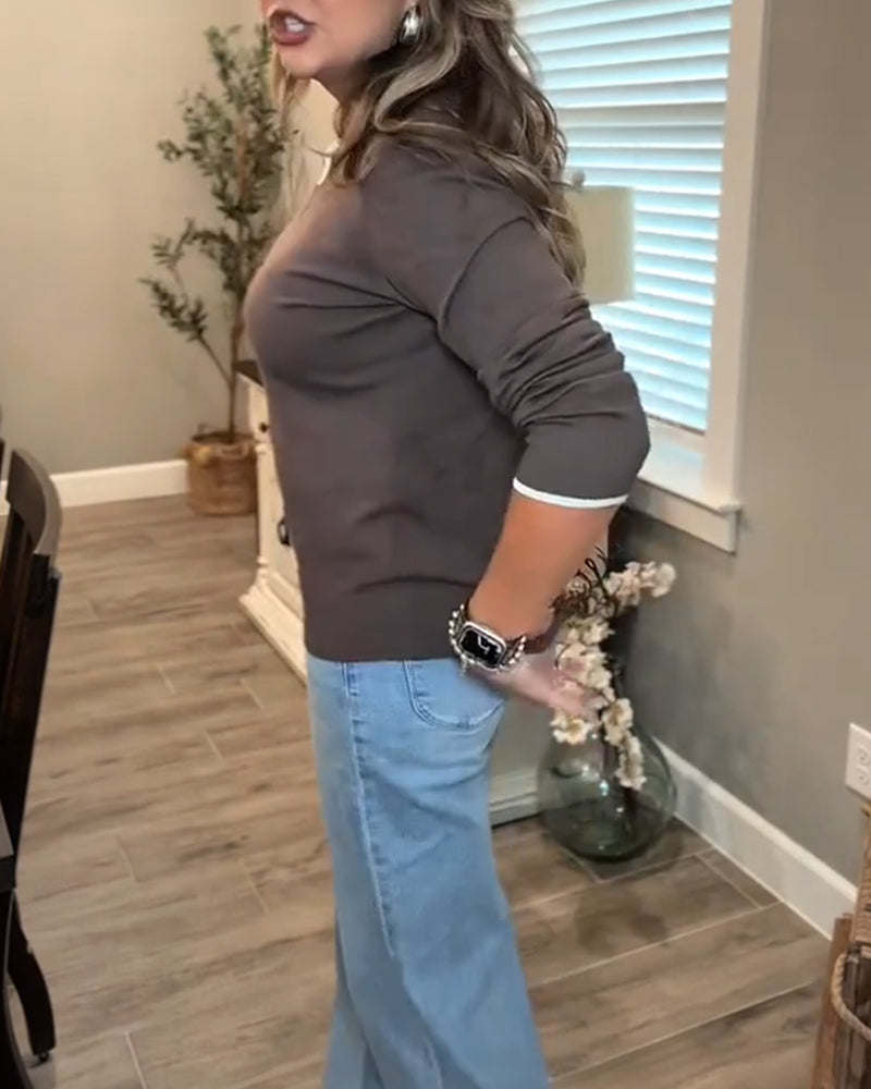 Genser Ensfarget Rund Hals Dropped Shoulders