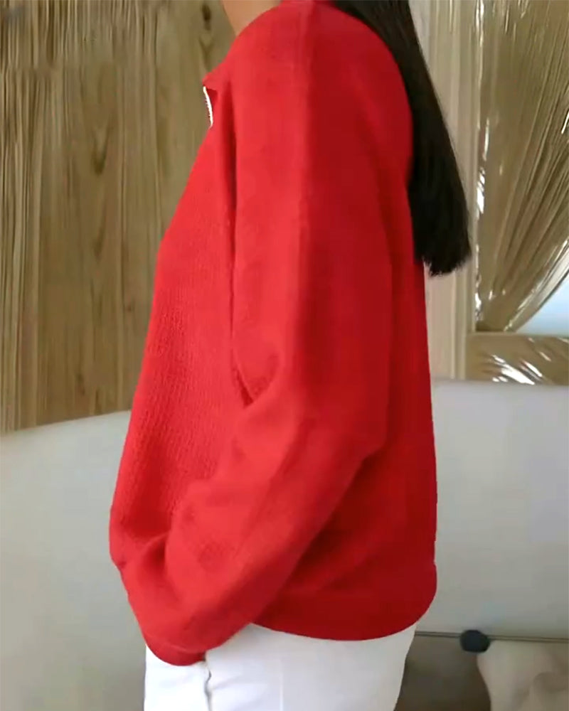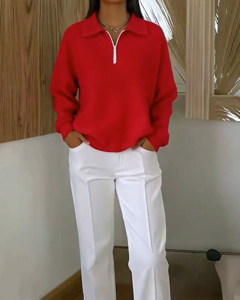 Uformell ensfarget langermet genser med glidelås