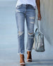 Denim Høy-Waisted Vasket Løs Baggy Casual