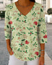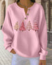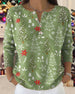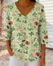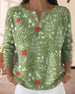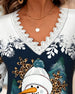 Damens strikket topp med julprint, V-hals, 3/4 ærmer, casual stil og løs passform