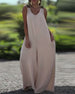 SPESIFIKASJONER Stil: Uformelt Kategori: Jumpsuits Materiale: Bomullsblandinger Mønstertype: Fargeblokk Halslinje: V-hals Erme lengde: Ermeløs Bukse type: Bredt ben Bukselengde: Lang Passform type: Vanlig Årstid: Vår,Sommer Detaljer: Lomme,Ryggløs,Kryssstropper Anledning: Daglig Pakken inkluderer: 1 x Jumpsuits STØRRELSESTABELL (cm) Størrels...