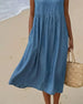Ensfarget Midi Kjole i Bomull og Lin