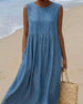 SPESIFIKASJONER Stil: Uformelt Materiale: Denim,Polyester Kjole type: Rett Kjole Kjolens lengde: Midi Halslinje: Rund hals Mønstertype: Ensfarget Erme lengde: Ermeløs Passform type: Vanlig Årstid: Vår,Sommer Anledning: Daglig Pakken inkluderer: 1 x Kjole STØRRELSESTABELL (cm) Størrelse Bryst Lengde S 97 120 M 101 121.5 L 105 123 XL 1...
