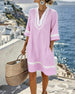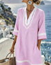 Feriekjole med V-hals og 3/4-ermet erme
