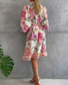 Uformell printet kjole med V-hals og halve ermer