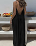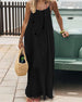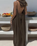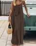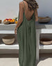 Kjole Ensfarget Rysj Ryggløs Spaghettitråd Maxi