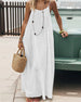 SPESIFIKASJONER Stil: Uformelt Materiale: Bomullsblandinger Kjole type: Rett Kjole Kjolens lengde: Midi Halslinje: Spaghetti stropper Mønstertype: Ensfarget Detaljer: Ryggløs,Snøring Passform type: Vanlig Årstid: Vår,Sommer Anledning: Daglig Pakken inkluderer: 1 x Kjole STØRRELSESTABELL (cm) Størrelse Lengde Bryst S 113 88 M 114 92 ...