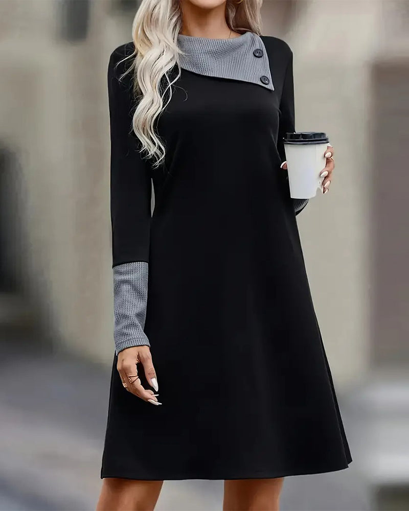 Kjole Med V-Hals, Trendig Utseende Og Fargeblokk Design