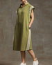Ensfarget løs kjole i bomull og lin
