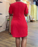 Ensfarget kortermet kjole med rund hals