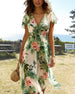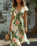 SPESIFIKASJONER Stil: Uformelt Materiale: 3% Spandex, 97% Polyester Kjole type: A-line Kjolens lengde: Maxi Halslinje: V-hals Mønstertype: Blader Ermetype: Vanlig erme Erme lengde: Halv erme Detaljer: Knapper, Rynket Passform type: Vanlig Årstid: Vår, Sommer Anledning: Daglig Pakken inkluderer: 1 x Kjole STØRRELSESTABELL (cm) St...