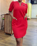 Elegant Ensfarget Kjole Med Trekvartsermer