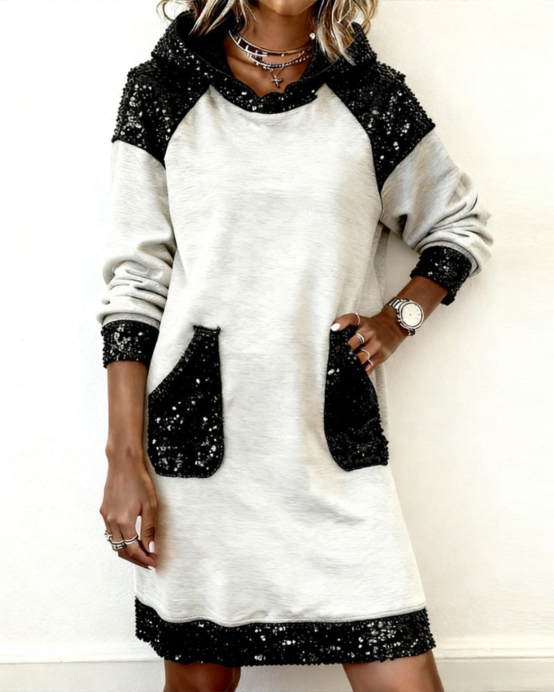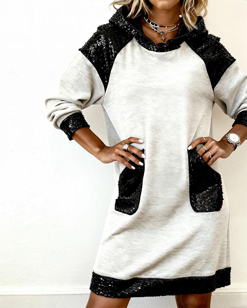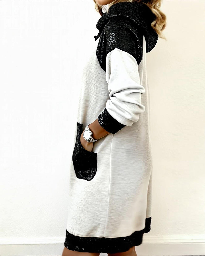 NY Icon1 Langermet Kjole Med Hette Og Kontrastfargede Paneler