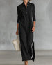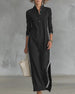 SPESIFIKASJONER Stil: Uformelt Materiale: Bomullsblandinger Kjole type: Rett Kjole Kjolens lengde: Maxi Halslinje: Krage Mønstertype: Stripete,Fargeblokk Ermetype: Vanlig erme Erme lengde: Langermet Detaljer: Knapper Passform type: Løs Årstid: Vår,Høst Anledning: Daglig Pakken inkluderer: 1 x Kjole STØRRELSESTABELL (cm) Størrelse Bryst Lengd...