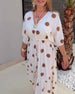 SPESIFIKASJONER Stil: Uformelt Materiale: Bomullsblandinger Kjole type: A-line Kjolens lengde: Maxi Halslinje: V-hals Mønstertype: Prikk Ermetype: Vanlig erme Erme lengde: 3/4 erme Detaljer: Snøring Passform type: Vanlig Årstid: Vår,Sommer Anledning: Daglig Pakken inkluderer: 1 x Kjole STØRRELSESTABELL (cm) Størrelse Bryst Lengde S 97...
