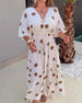 SPESIFIKASJONER Stil: Boho Materiale: Bomullsblandinger Kjole type: Rett Kjole Kjolens lengde: Maxi Halslinje: V-hals Mønstertype: Blader,Trykt Ermetype: Flaggermus erme Erme lengde: 3/4 erme Detaljer: Snøre opp Passform type: Løs Årstid: Vår,Sommer,Høst,Vinter Anledning: Daglig Pakken inkluderer: 1 x Kjole STØRRELSESTABELL (cm) Størrelse Br...
