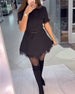 Ensfarget lommekjole med hule blonder med korte ermer