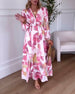 Langermet trykt elegant maxikjole med v-hals
