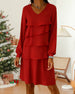 SPESIFIKASJONER Stil: Uformelt Materiale: Bomullsblandinger Kjole type: Rett Kjole Kjolens lengde: Over kneet Halslinje:V-hals Mønstertype: Ensfarget Ermetype: Lanterne erme Erme lengde: Langermet Detaljer: Rufsete Passform type: Vanlig Årstid: Høst,Vinter Anledning: Daglig Pakken inkluderer: 1 x Kjole STØRRELSESTABELL (cm) Størrel...