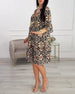 Kjole Kortermet V-Utringning Leopardmønster