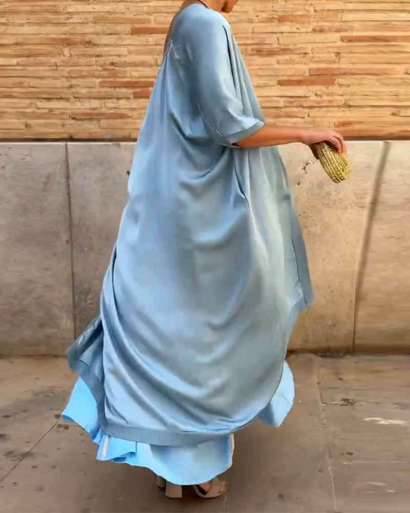 Icon1 Satt Trykt Rund Hals Lang Kjole Casual Topp To Deler